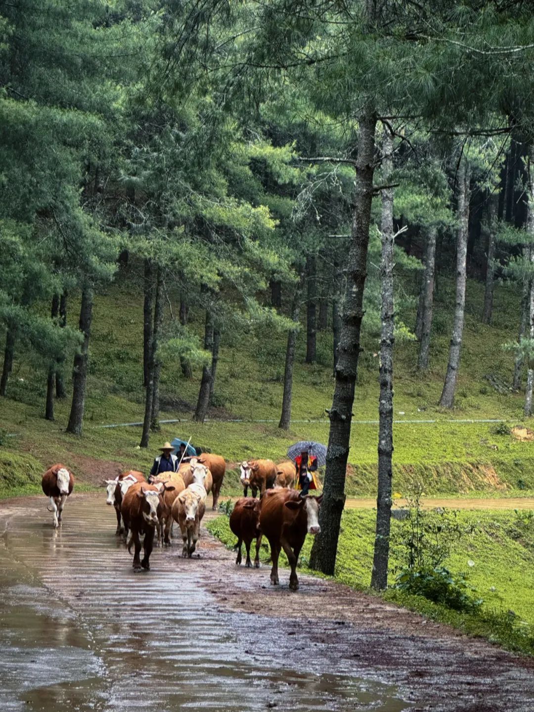 酒房乡摆田村麦地山小组,便栖息在这座绿色丰碑的怀抱中。坡地上,村民赶着牛群踏露进山,黄牛健硕的身影与苍翠林海相映成趣。它们宽阔的脊背上,驮着的不仅是村民的生计,更承载着林场馈赠的生态福祉。在这里,人与自然和谐共生并非偶然,而是杨善洲精神落地生根的必然——老书记种下的不仅是树,更是生生不息的希望。