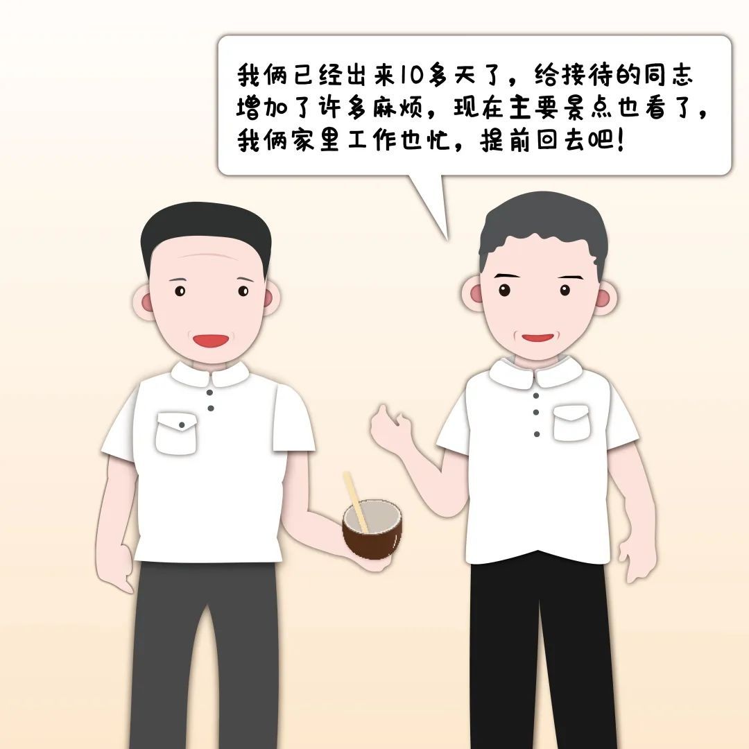 1999年8月,因杨善洲和余在济退而不休,在发展茶叶产业方面都作出了突出成绩,云南省茶叶协会安排他俩到海南疗养一个月,费用由省里负责。他俩按照安排去了海南。第10天下午,杨善洲跟余在济说:“我俩已经出来10多天了,给接待的同志增添了许多麻烦,现在主要景点也看了,我俩家里工作也忙,不一定在这里住一个月了,提前回去吧!”于是,他俩第二天就返回了昆明。省里安排的经费也仅仅用了一部分。杨善洲说:“这样做一举三得,一来节省了资金;二来我们回去可以多干20天的工作;三来减少了接待的麻烦。”