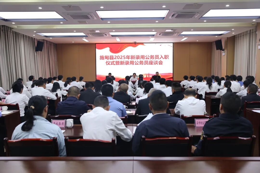 10月17日,施甸县举行2025年新录用公务员入职仪式暨新录用公务员座谈会。县委书记周耀泉出席会议并讲话。