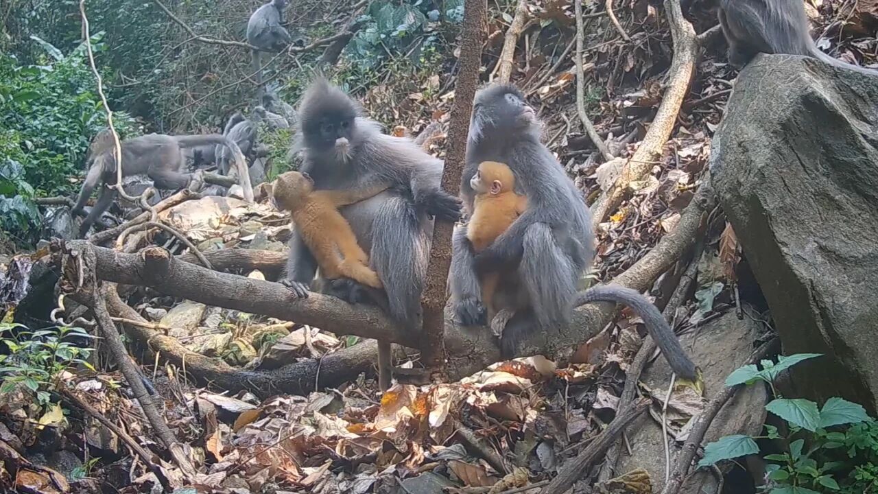 印支灰叶猴是国家一级重点保护野生动物。近日,在云南省保山市施甸县善洲林场,多组野外监控镜头捕捉到灰叶猴妈妈带娃的珍贵瞬间。从攀爬跳跃到互助带崽,从亲密依偎到独立初探,一幕幕温馨灵动的场景,尽显自然界中最动人的母爱与蓬勃生机。