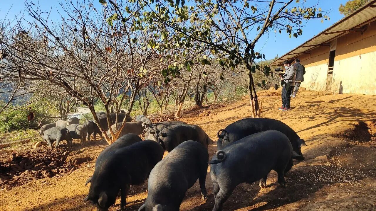 张海彪告诉记者,那时的摆榔乡山路泥泞,农产品运不出去,是云南中烟的订单让村民看到希望。如今,张海彪的农场早已升级成了保山黑猪的新名片。这种肉质细嫩的“七花肉”,在云南农业大学技术支持下实现自繁自养,2024年回收的400多头黑猪,让参与农户每头赚了9000元。