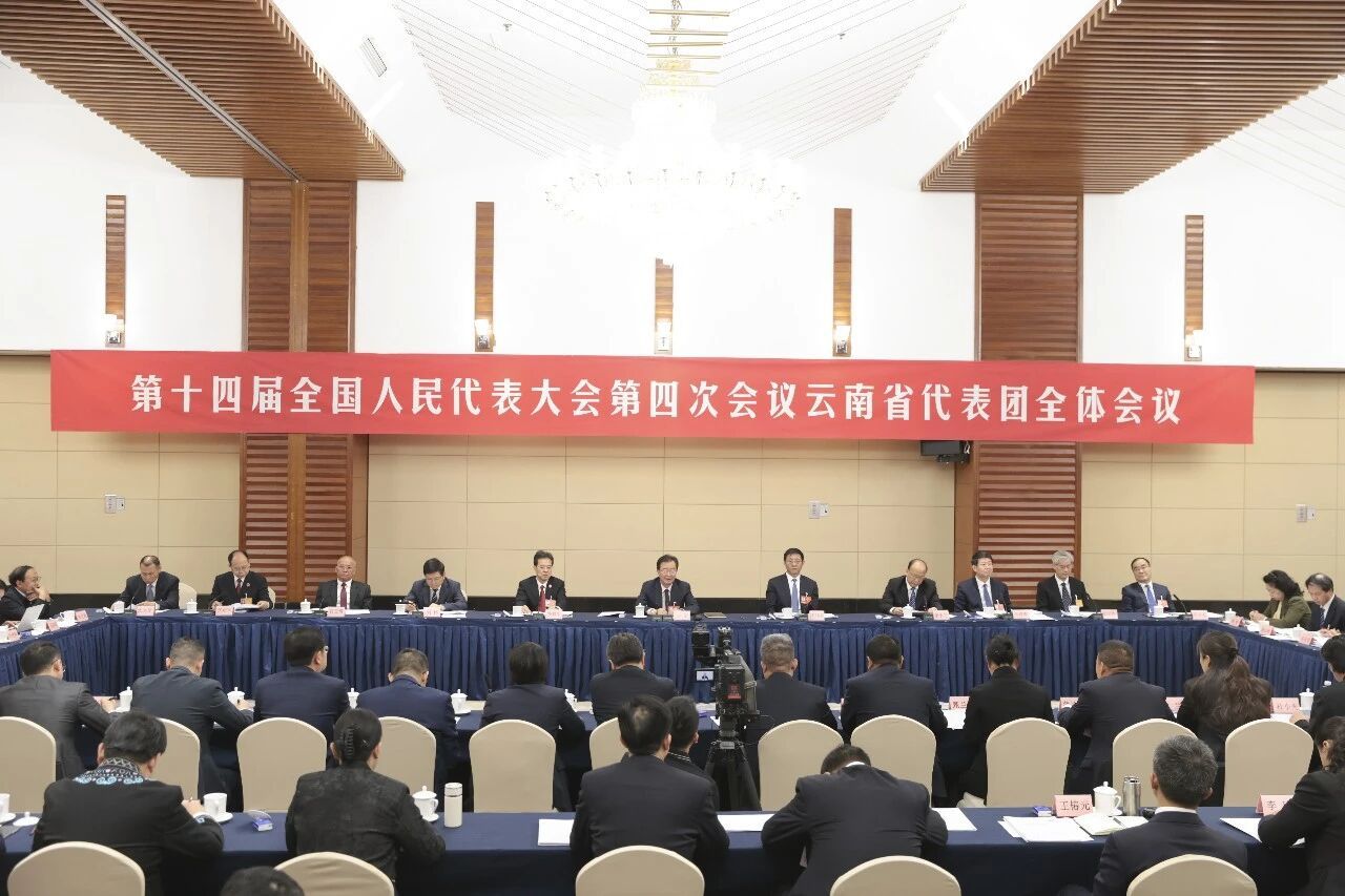 3月11日上午,出席十四届全国人大四次会议的云南省代表团举行全体会议。