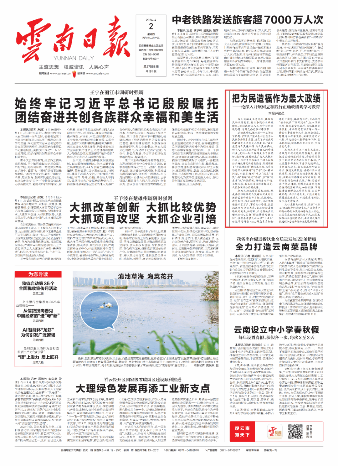 《云南日报》头版刊发评论员文章《把为民造福作为最大政绩——论深入开展树立和践行正确政绩观学习教育》