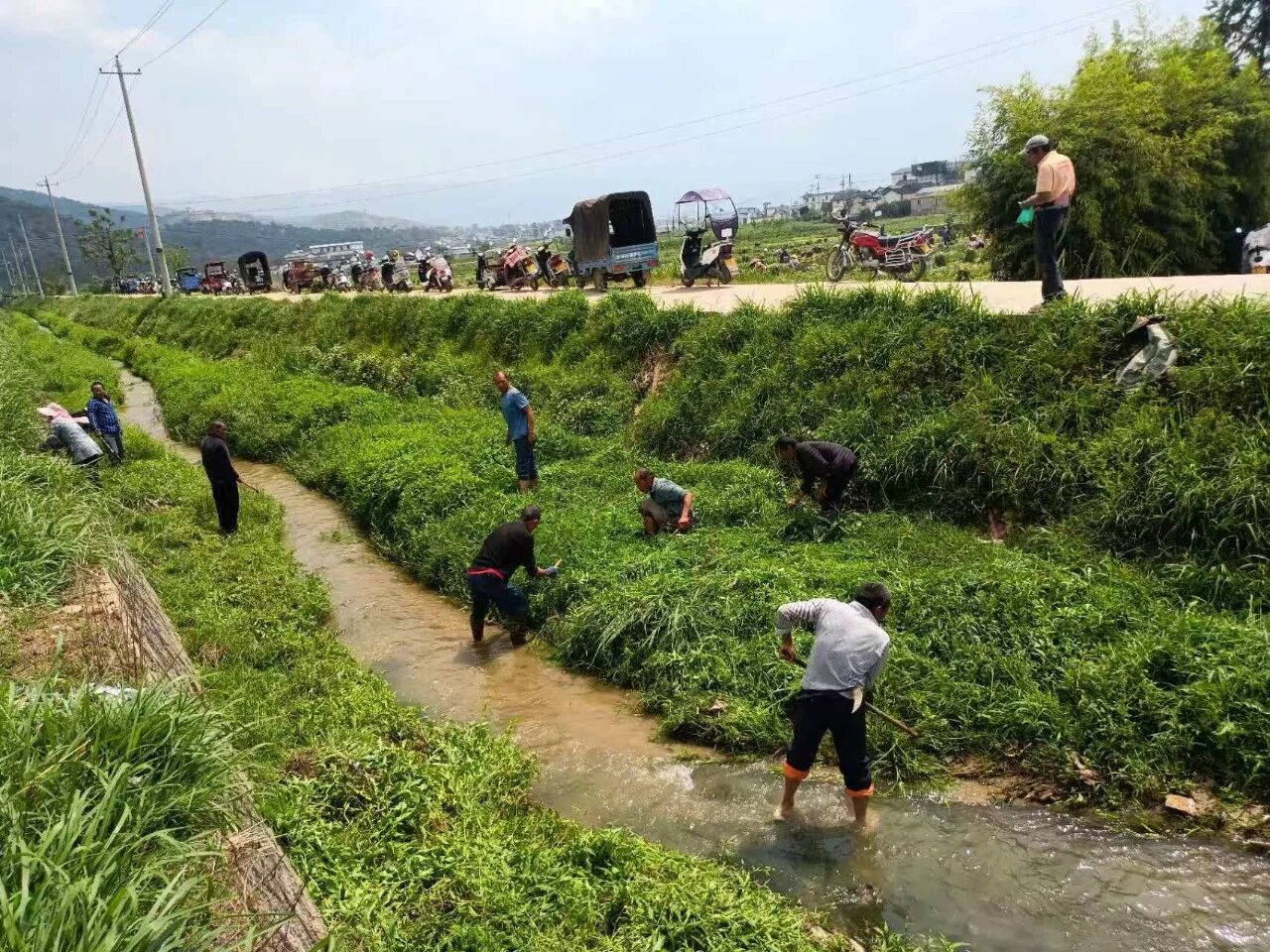 活动中,志愿者们分工协作,沿施甸河开展集中整治,全面清理河道垃圾、杂草淤泥与水面漂浮物,排查安全隐患、疏浚堵点,修复河岸生态,提升行洪排涝能力。16个村同步对辖区沟渠、坝塘进行清杂清淤,确保引排水畅通。