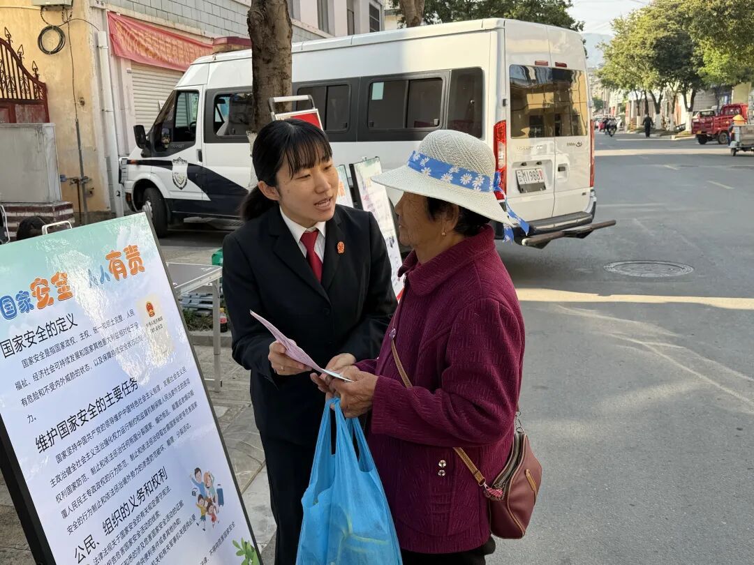 在县城集镇、乡镇集市等人流密集区域,组织公安、检察院、法院、应急等多部门开展国家安全教育集中宣传活动。工作人员通过设置咨询展台、悬挂宣传横幅、现场讲解答疑、发放宣传资料等方式,面对面向过往群众普及政治安全、网络安全、社会安全、生态安全、粮食安全等各领域国家安全知识,细致解答群众关心的安全问题,引导群众主动学习国家安全相关法律法规,切实营造全民关注国家安全、参与国家安全、维护国家安全的浓厚社会氛围。