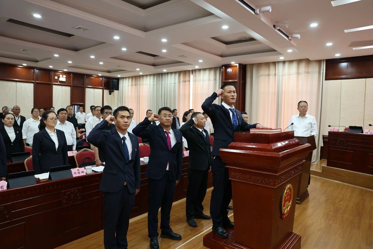 会议审议通过有关人事任免议案,并颁发任命书;新任职人员代表作表态发言,并集体进行宪法宣誓。