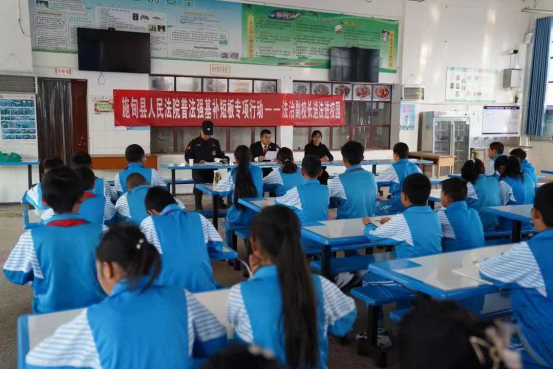 近日,施甸法院刑事专业法官、沙坝小学法治副校长李飞及相关工作人员走进校园为六年级学生讲授法治课,为130余名即将踏入初中就学的未成年人播下遵纪守法的种子。