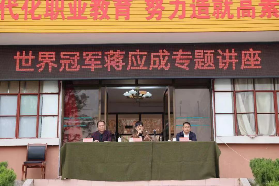 蒋应成给师生讲述了自己的成长经历、比赛经历、回馈社会经历,用朴实无华的语言描述了自己为实现梦想而努力奋斗的历程。从在校学习、生活、工作的点滴故事到参加世界技能大赛登上世界之巅等娓娓道来,为同学们分析现状,启迪未来,并用精益求精的工匠精神激励同学们,用事实说明中职生也有春天也大有作为,希望同学们要有信心、有目标、有行动、有体力、有成效、有尊严,努力学好技能本领,为今后就业创业之路打下良好的基础。并指出职校生的发展前景广阔,只要同学们在校刻苦学习,也是有机会成功逆袭的,前途也会一片光明,成才路也会越走越宽。