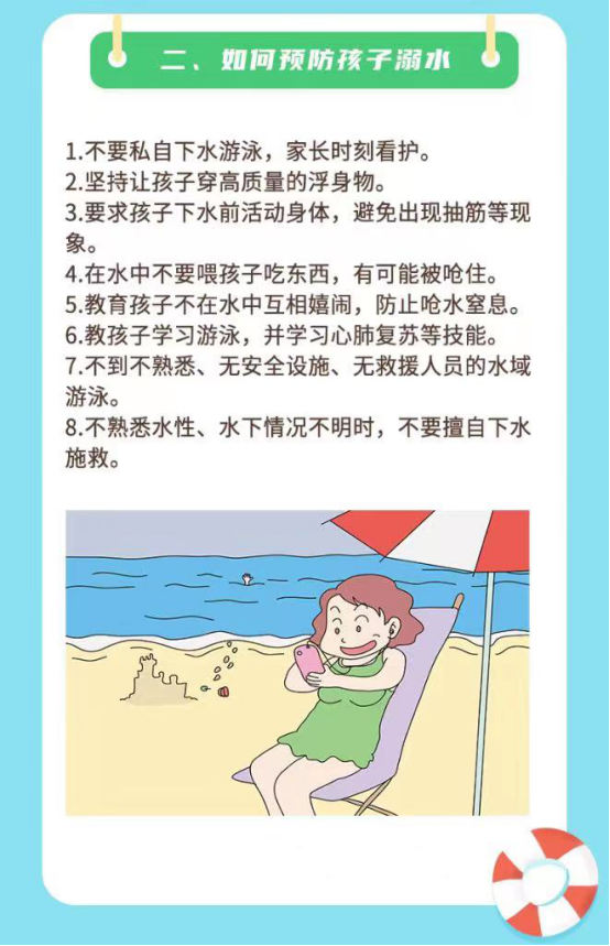 游泳和戏水场所的管理员及救生员的主要职责是现场管理和维护秩序,但是他们无法做到专门时时盯着每个孩子的状况。因此家长朋友要记住,时时有效看护水中的孩子,是家长的责任。