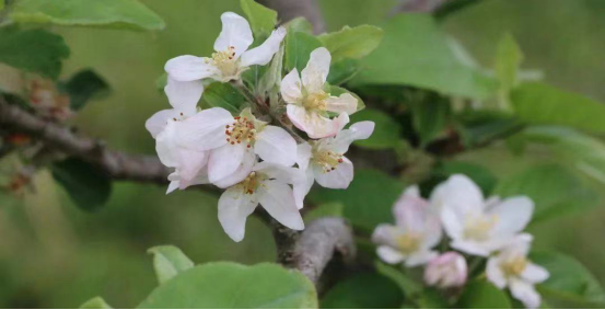 春寒料峭之时,它慢慢苏醒、悄然挺立、放肆盛开,不善张扬却带着些许傲气,用芬芳馥郁谱写春日风光,一朵花一颗果,正孕育着金秋丰收。