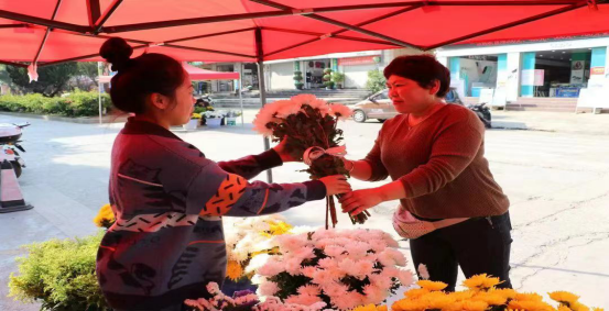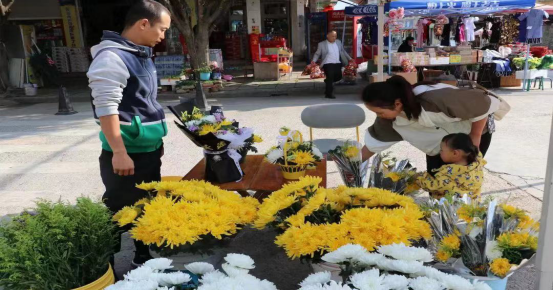 “我每年都在这里卖菊花,现在都提倡文明祭祀,买花的人一年比一年多了。”商户黄国权一边打包花束一边说。