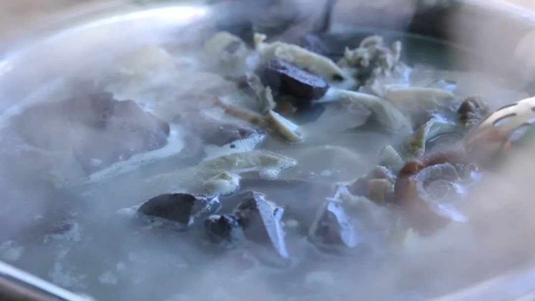 羊扒烀美味,做法却也简单。将新鲜健壮的漫山跑的羊宰杀后放入大铁锅,倒入清水,放入调料,炖上二至三小时便可。而羊汤锅的火候,对其最后呈现的味道至关重要。出锅后,铁锅里汤鲜肉美,令人垂涎欲滴。说起羊扒烀,要数头锅最鲜美。炖煮好后,把大块羊肉捞出经过大厨们“庖丁解羊”式的熟练刀法,各个部位被分割成小块,放入锅中加入煮羊的原汤。青花椒丢上几颗,羊肉汤的灵魂被激发出来。