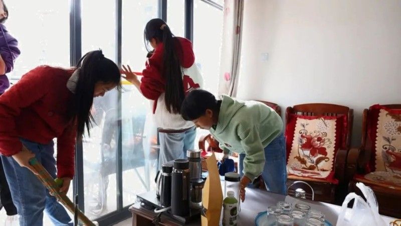 “阿叔,你好。我们是社区的工作人员,平时都是老人和娃娃在家,我们领了几个小朋友过来帮忙打扫一下卫生。”临近春节,甸阳镇幸福社区的工作人员带领着几个小学生手拿扫帚、抹布等来到了甸阳镇幸福社区居民穆啟厚老人家,为老人打扫卫生。