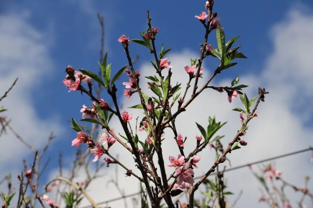 在农户家的房前屋后,桃花、梨花竞相盛开,深粉、浅粉、桃粉、桃红、雪白,各种颜色点缀着乡村,到处生机盎然,农村古屋掩映其中,呈现一片和谐之美。