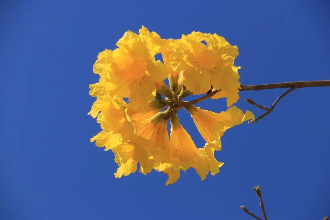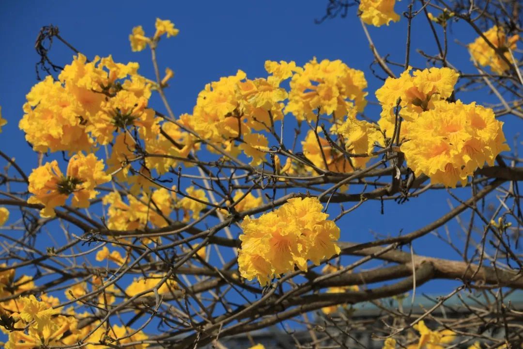 在由旺各个巷口,黄花风铃木开满枝头,一丛丛、一簇簇,在阳光的照耀下,金黄色的花瓣熠熠生辉,行走于树下,花影在身边交错,让人真切感受到身处春意盎然的美景之中,可谓是人在花中游,人在画中游。