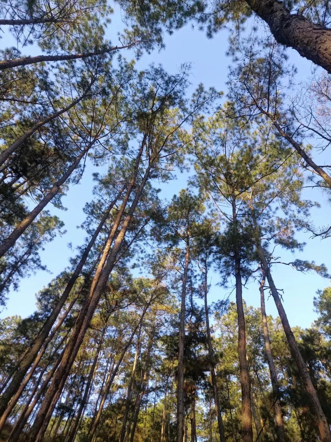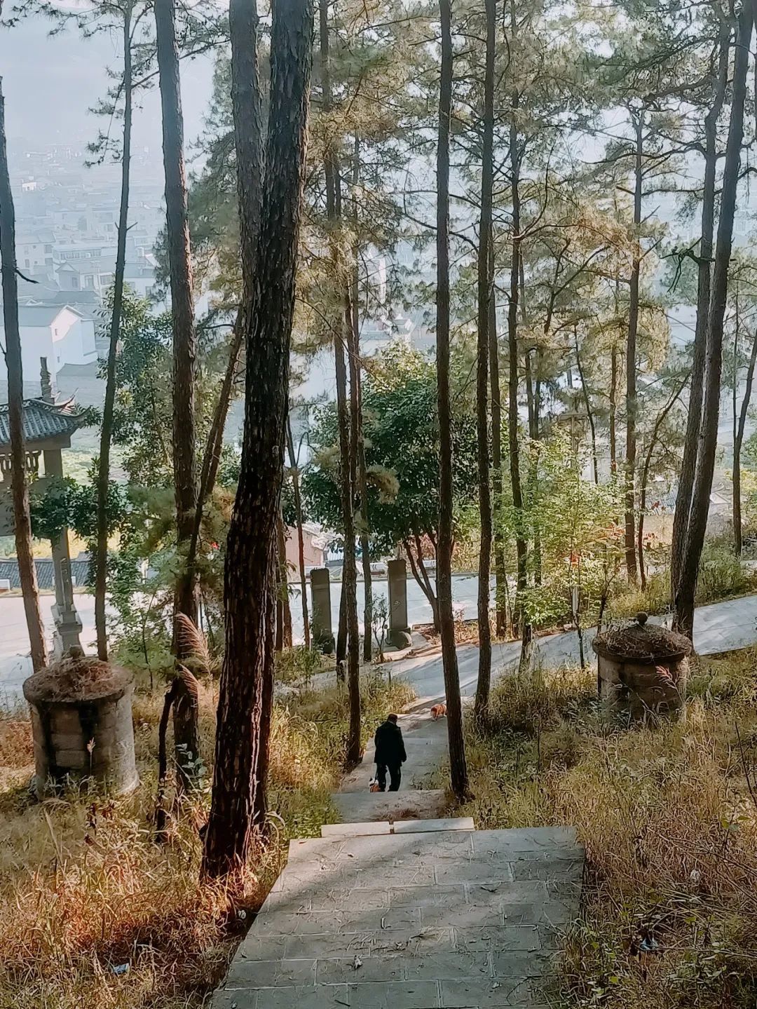 在少保山,苍翠的松树迎着春风茁壮生长,清晨,阳光穿过树林,光影映衬在石梯上,晨练的人们拾级而上,仿佛在仙境中穿行。