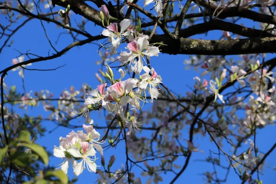 随着春分、清明、谷雨等节气到来,3月中旬到5月上旬是踏青赏花的最好时节,施甸由旺到处生机勃勃,赏花踏春正当时。在施甸大河畔,木棉盛放,引来鸟儿、蜜蜂,奔忙在枝头,春天忙着为它们安排时序和花期。在由红公路两边的山林中,数不尽的白露花尽情盛放,形成绚丽的鲜花走廊,空气中飘来阵阵花香,沁人心脾,盛放后的鲜花白里透着浅浅的紫色,花瓣像是飘荡在风中的音符,可以观赏,也可以食用,春的味道,让人唇齿生香。