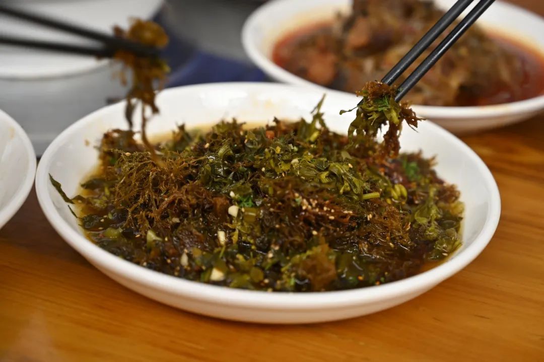 采春的乐趣,是穿梭林间的满目春光,提上竹篮、背上背篓,漫步在山林草地,轻嗅别样“清香”后,就地挖出几株鱼腥菜,顺着水流声在岸边寻找,发现刚长出的水芹菜和水香菜。采摘蕨菜时,顺便在附近的桤木树上薅一捧树花。与会爬树的朋友同行,可合力采摘酸苞苞,不会爬树也没有关系,大自然总是慷慨大方,够一够总是能采到几颗。在路人的指引下,在树荫下发现几株马鹿菜,采摘时,大家还商量着如何烹调这些山茅野菜。