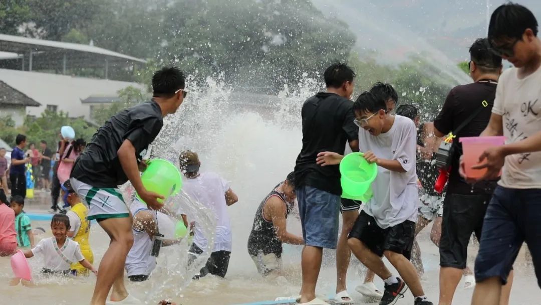 水在空中划出一道道美丽的弧线,晶莹的水珠在阳光下闪烁着光芒,仿佛是欢乐的精灵在翩翩起舞。活动现场,人们纷纷拿起水桶、水枪、喷射器等各种泼水工具,用泼水的方式传递着祝福和喜悦,大家沉浸在欢乐的海洋中,尽情享受着这个独特的节日氛围。