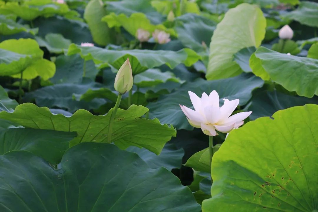 渺渺清风,荷田微漾。夏天,是荷花的主场,六月的仁和镇也是赏荷的好去处,在仁和镇苏家村、热水塘村的荷塘里,大片雪白的荷花悄悄登场。它们或含苞待放或已展开两三片花瓣或全部盛开,形态各异的荷花唤醒了人们对夏日的记忆符号,微风吹过,荷香扑鼻,怡然自得。