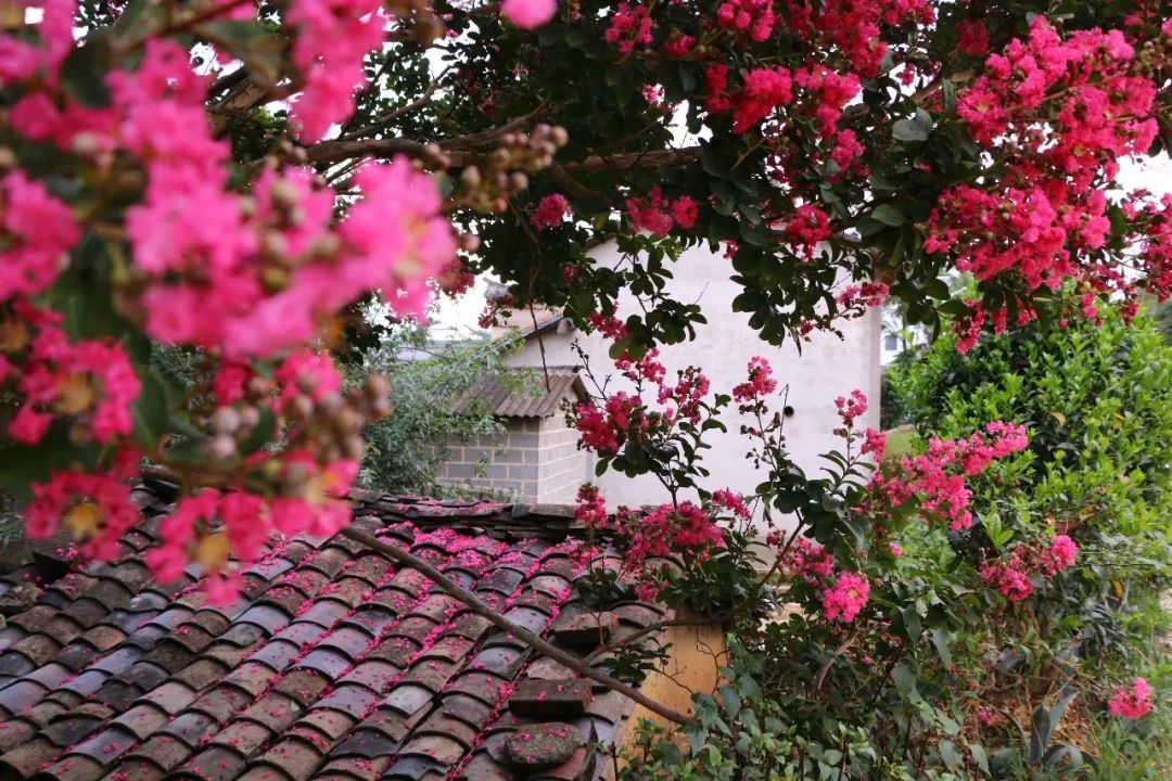 “门前种株紫薇花,家中富贵又荣华。”人们总喜欢在自己院子栽种火把花,象征富贵荣华之意的火把花在夏日里绚烂地绽放着,那繁盛艳丽的样子实在是叫人喜欢不已。每每走近树下,都能听见蜜蜂忙碌的声音。花朵随风翩翩起舞,随热浪徜徉,烘托出一个明媚生机的夏日。