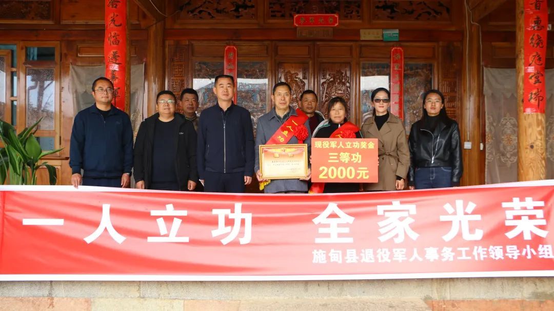 2月19日,施甸县人民武装部、县退役军人事务局牵头,在仁和镇人武部、镇退役军人服务站和村“两委”工作人员的带领下,一行人为勒平村3名现役军人和苏家村1名现役军人获“三等功”家庭送去牌匾喜报及慰问金,对他们获得的荣誉表示祝贺,并送上了党和政府的关怀与祝福。