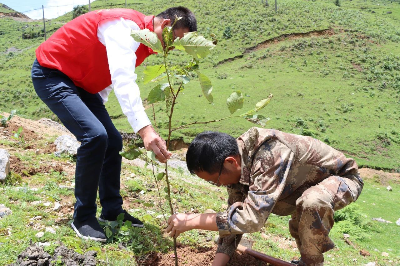植树现场,相关专业技术人员在详细讲解桤木苗种植的要点后进行示范操作,包括挖坑深度、树苗放置角度、培土方法等,随后根据分组,大家积极投入到植树活动中。三五人一组,相互配合,有的挥锄铲土、有的扶苗填坑、有的培实新土,每一个环节都衔接有序。大家充分发扬不怕苦、不怕累的精神,栽下一株又一株小树苗。