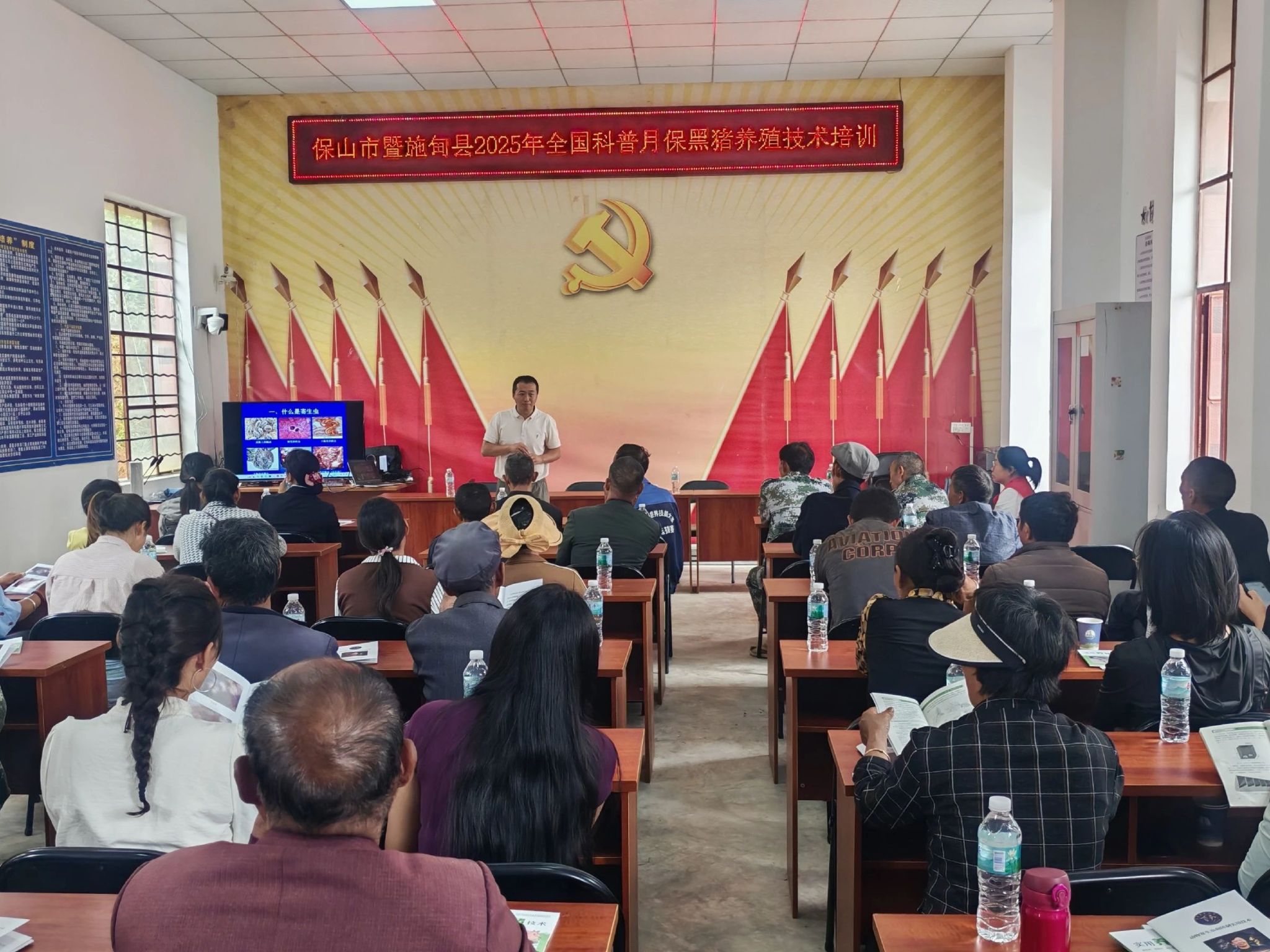 在2025年首个“全国科普月”来临之际,近日,施甸县在万兴乡长浪坝村开展了保山黑猪养殖技术培训,共有当地50余户养殖户参加“充电蓄能”,为即将到来的“全国科普月”活动拉开了精彩序幕。