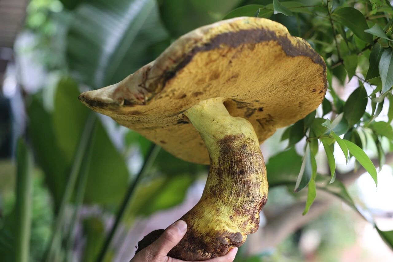 连串惊人的数据,直观展现出这朵粉菌的“大”,32厘米的菌帽直径、20厘米长且如成人手臂粗的菌杆,再加上1.9千克的体重,使其在众多粉菌中脱颖而出 。