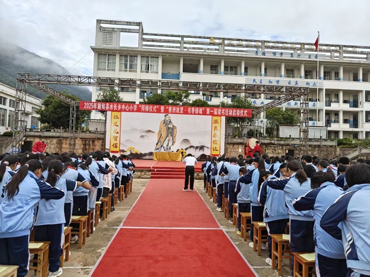 9月28日,水长乡中心小学举行拜师仪式暨“善洲故里·书香铸魂”第一届读书活动启动仪式。活动以“传承文化经典,培育书香少年”为主题,将传统礼仪与现代教育相融合,引导学生在实践中感悟文化精神,培育书香少年。