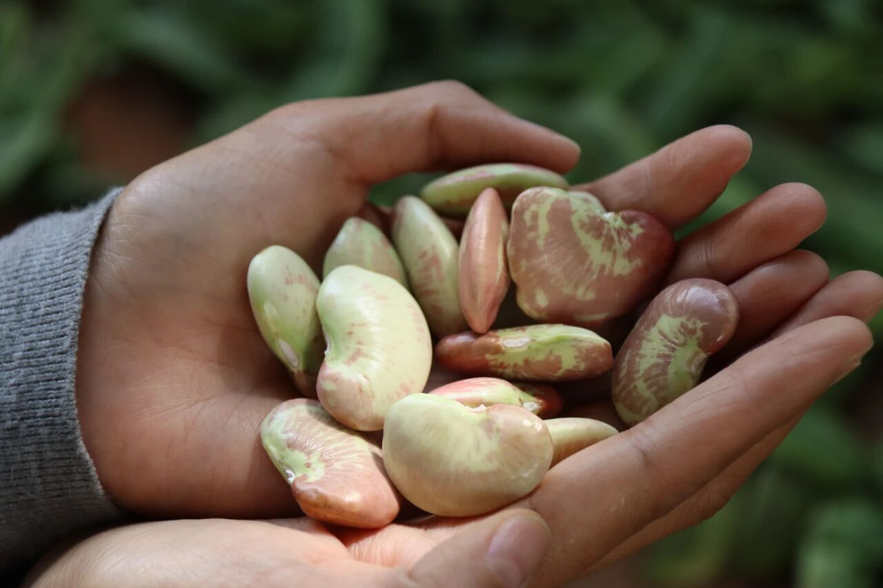 乌木村的村民常把荷包豆称作“懒庄稼”,因其种植管理省心——每年五六月份种下后,待玉米收割,荷包豆才依附玉米秆舒展生长;到11月,藤蔓间便挂满豆荚,剥开外壳,个大光亮、带有紫红花斑的豆米,正是口感绵软香甜的最佳食用期。