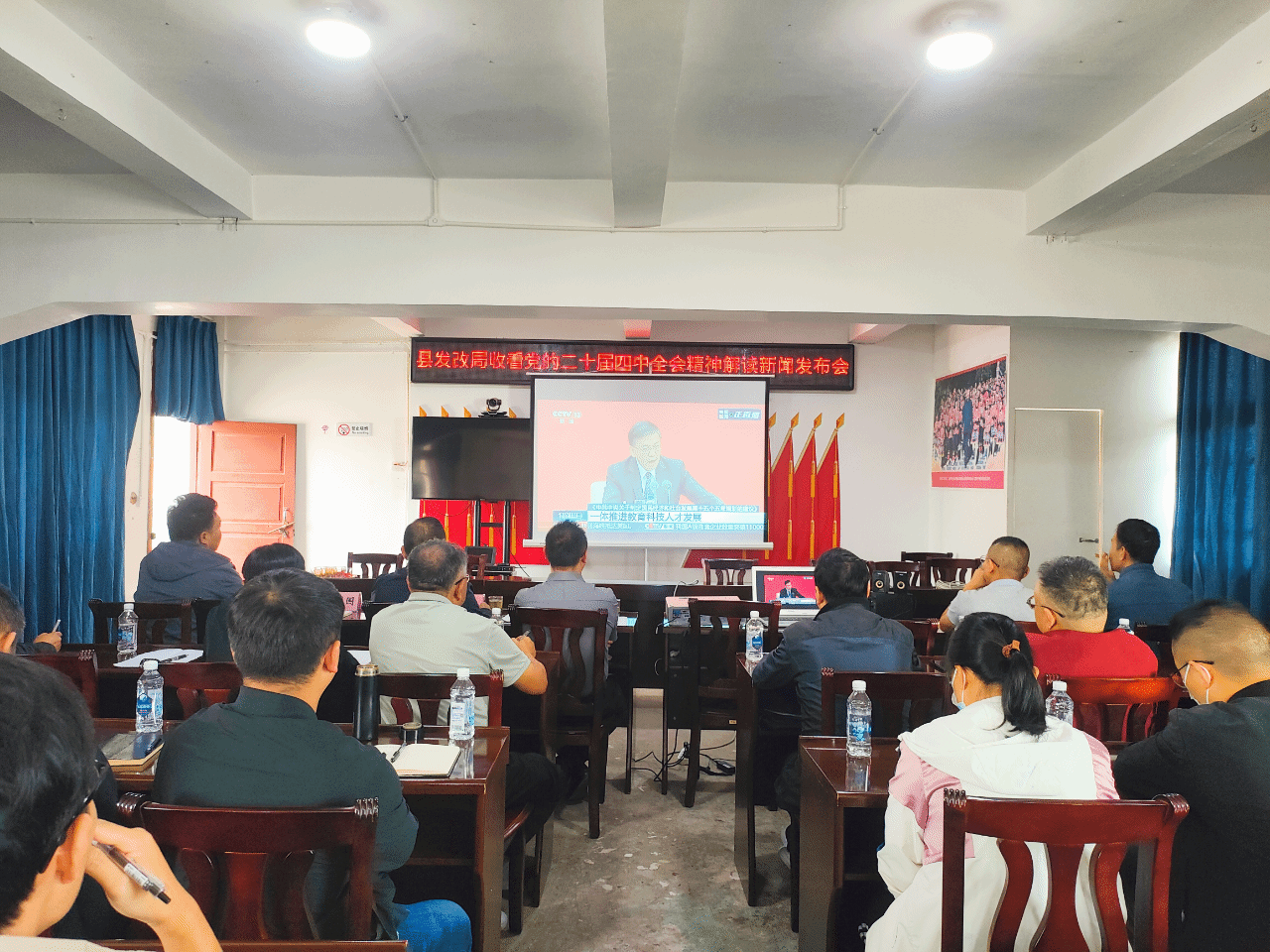 县发改局集中收看党的二十届四中全会精神介绍和解读新闻发布会。全体党员干部认真聆听细记录,深刻领会全会精神的重大意义与实践要求。大家纷纷表示,全会精神为发改工作提供根本遵循,特别是关于建设现代化产业体系、建设强大国内市场、促进区域协调发展等方面的部署,与发改工作紧密相关。收看结束后,项目策划办公室主任杨伟说:“下一步,策划办将全力配合做好县级‘十五五’规划、项目集群规划的编制及项目谋划、储备、申报、争资工作,为推动施甸经济社会高质量发展贡献发改力量。”