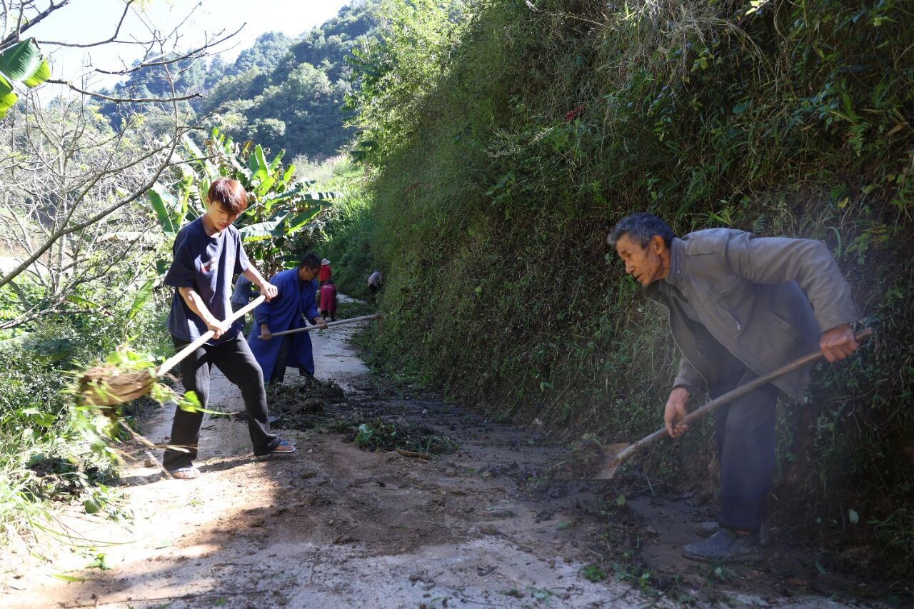 在万兴乡长浪坝村,村民们拿着镰刀、扫帚、铁铲,仔细清除道路两旁的杂草,还对路面长期堆积的泥土进行彻底清理,确保道路畅通又整洁。