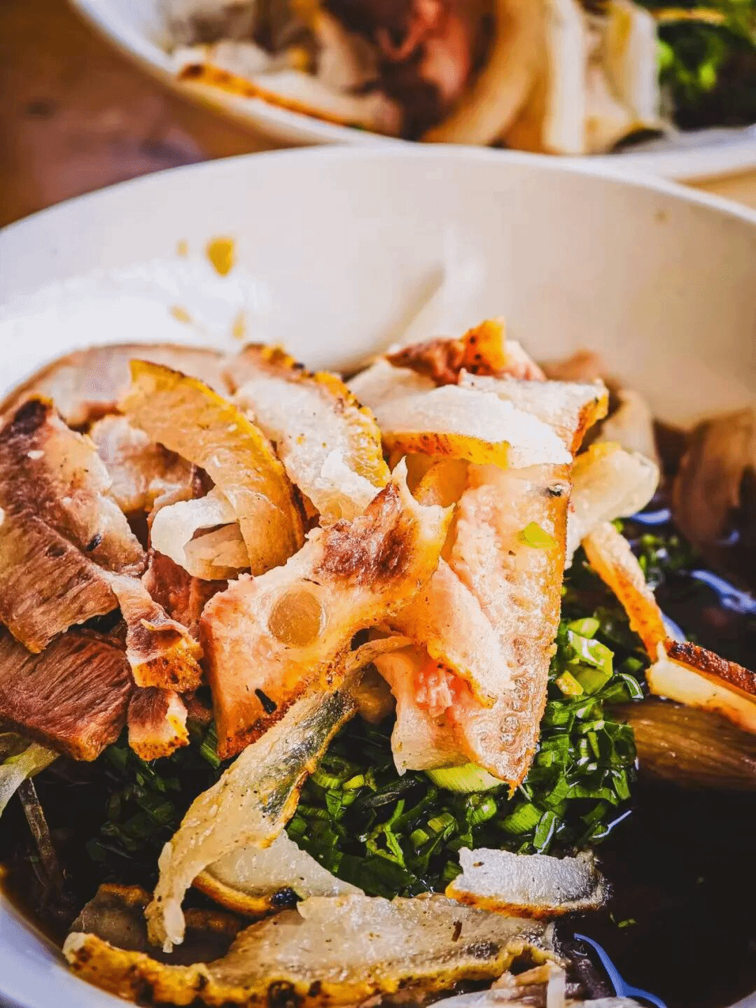 没想到仙人掌也能入菜?这道仙人掌排骨汤正是农家饮食智慧的体现。精选排骨焯水后慢炖至软烂,加入切好的仙人掌块继续炖煮,仙人掌的脆嫩与排骨的醇厚相互碰撞,汤汁清润鲜香,入口清爽,是年猪饭中兼具创意与营养的别样风味。