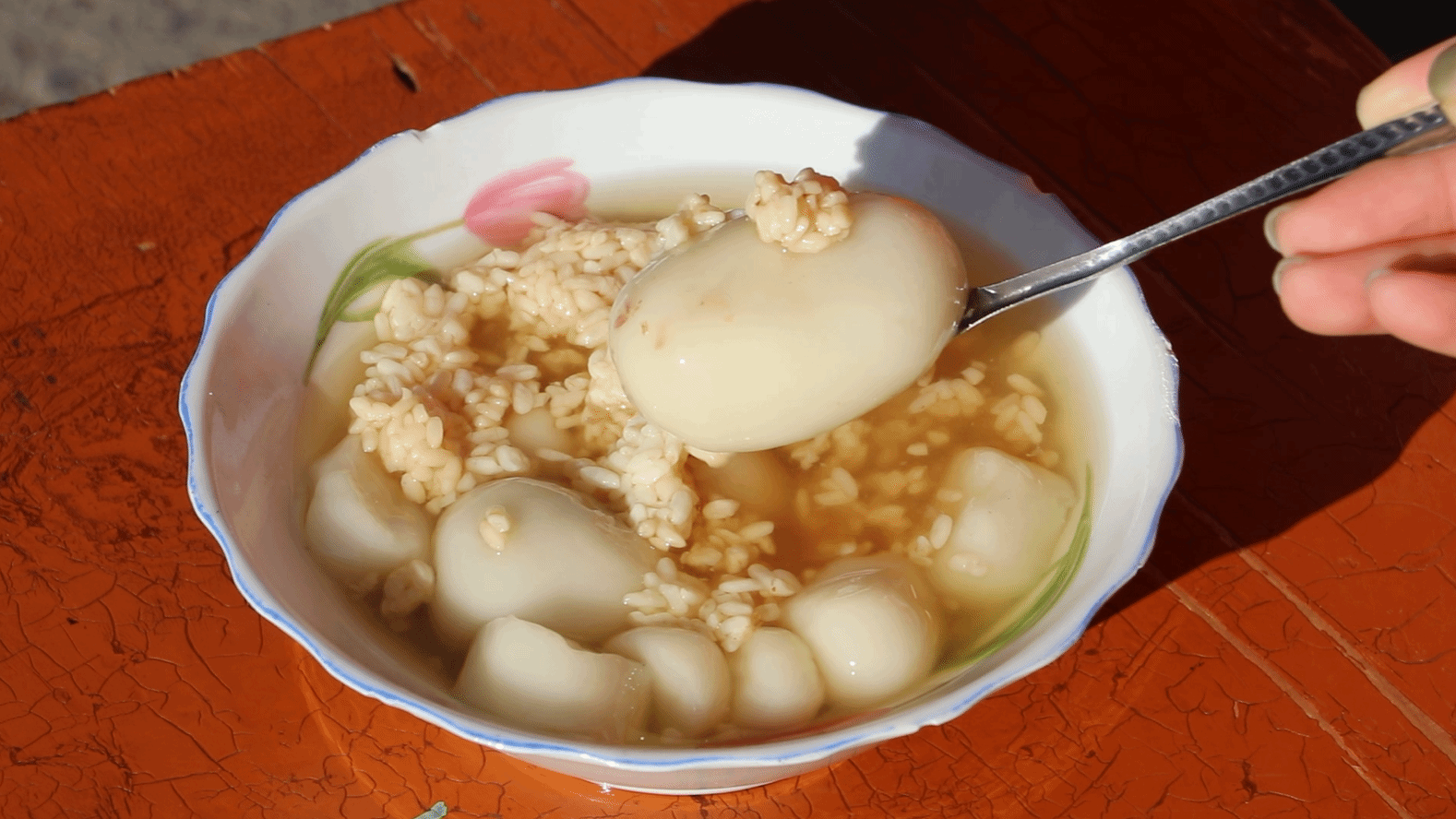 老街汤圆不再局限于街天售卖,除了街天的后一天稍作休整外,其余的日子都守在老位置贩卖“甜蜜”。于是,清晨的学生、午后的老人、晚归的工人,不必再等逢街天的日子。一碗碗胖嘟嘟的汤圆盛进瓷碗,红糖水澄亮,甜白酒飘香,热气袅袅地漫上来,模糊了老街的风景——像岁月忽然温柔地打了个晃。这热气,暖的是手,更是心,像是替这条街呼出一口安稳的、属于旧时光的气息。