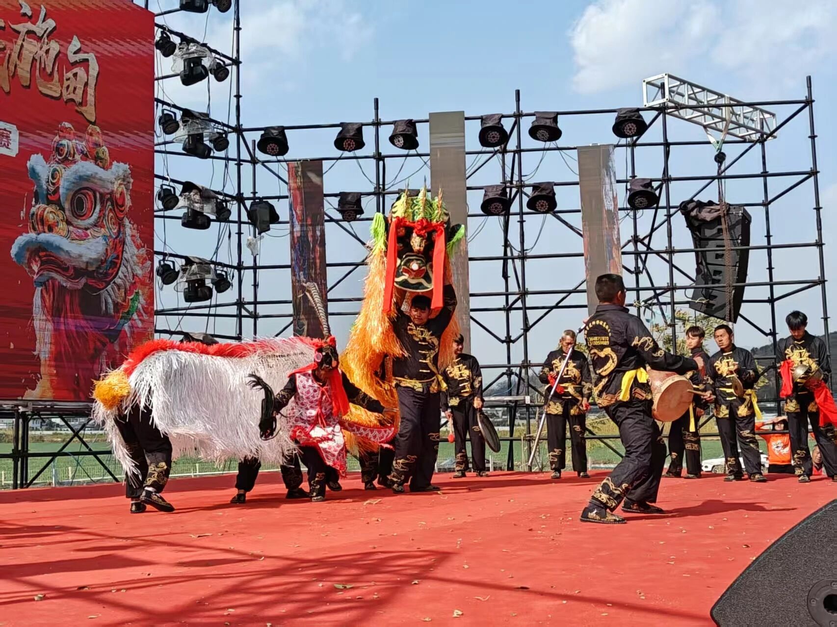 舞狮表演的“喝彩”环节,无疑是全场的高潮,令人陶醉其中。“喝彩”者通常拥有出众的口才与敏捷的反应能力,能够根据不同的场合即兴编创祝词。这些“喝彩”祝词既紧密贴合当下的情境,又巧妙融入地方方言的韵律,读起来朗朗上口。“喝彩”人站在场中,声音洪亮如洪钟,言辞精彩如舌灿莲花,祝赞声与锣鼓乐点相互呼应,节奏起伏有致,情感层层递进,让观者的心潮随之跌宕起伏,澎湃不已。