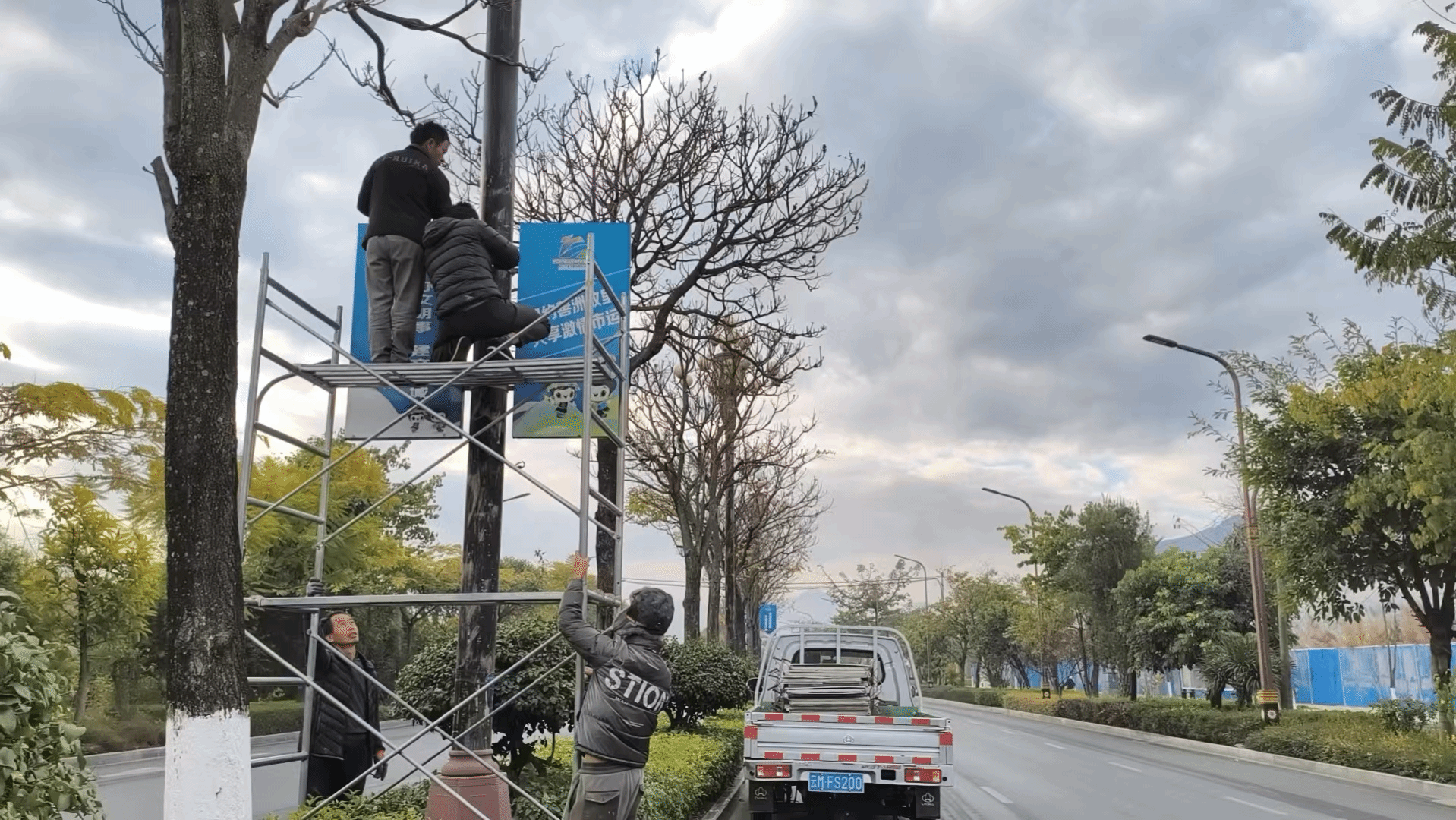 对于排查出的问题广告牌,县综合行政执法局坚持“劝导为先、依法整治”思路,采取“自拆 + 强拆”分类处置模式。执法人员主动与产权商家、单位沟通,解读户外广告设置法规,说明安全隐患风险,指导商家履行安全主体责任,下达《限期整改通知书》并跟踪督促。对逾期未整改的违规广告设施,依法强制拆除。拆除现场,执法队员设置安全警戒线、维护秩序,专业团队精准作业,执法人员旁站监督,确保拆除工作安全高效。此外,专项行动还延伸至清理路灯杆、电线杆上的破旧小广告,净化城市空间。