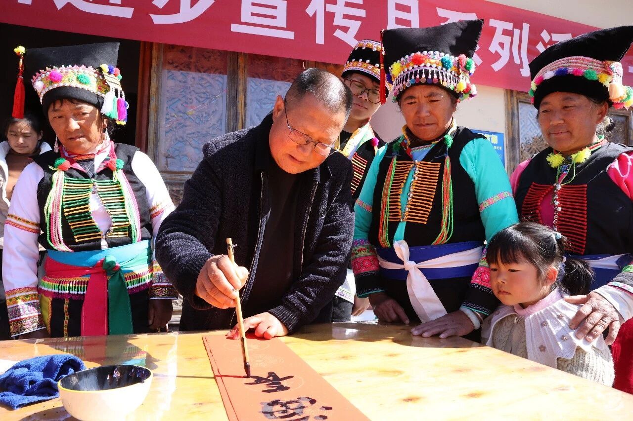 1月29日,施甸县民族宗教事务局深入木老元布朗族彝族乡木老元村搬迁安置点,开展民族团结进步宣传活动,通过写春联送祝福、知识问答传政策、民族打歌聚民心等形式,让搬迁群众在欢声笑语中感受新春暖意,厚植民族团结深情。