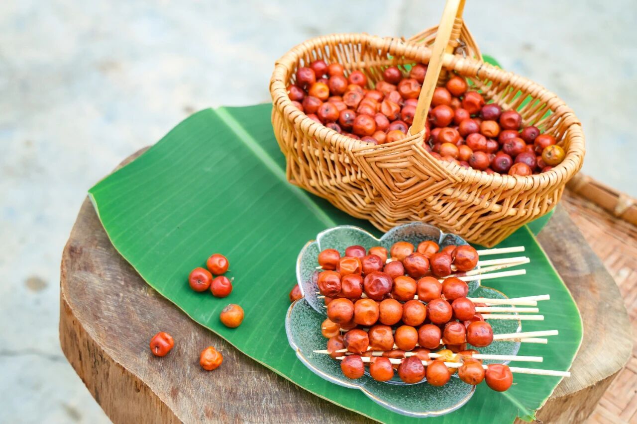 “酸李子儿”的风味,随果实成熟度层层变化。青果入口涩味浓重,黄果则酸涩交织,唯有历经青转黄、黄渐红的成熟过程,才是最佳采摘时机,此时果实酸中带甜,口感层次丰富。在物资匮乏的年代,老一辈人的童年没有种类繁多的零食,却将这不起眼的野果吃出了多样风味:把野酸枣串成串裹上糖浆,便是酸甜解腻的手工糖葫芦;搭配红糖慢熬至浓稠,可制成醇香的酸枣酱;鲜果直接蘸上辣椒面,酸、甜、辣三重风味交融,是极具滇西特色的地道吃法。