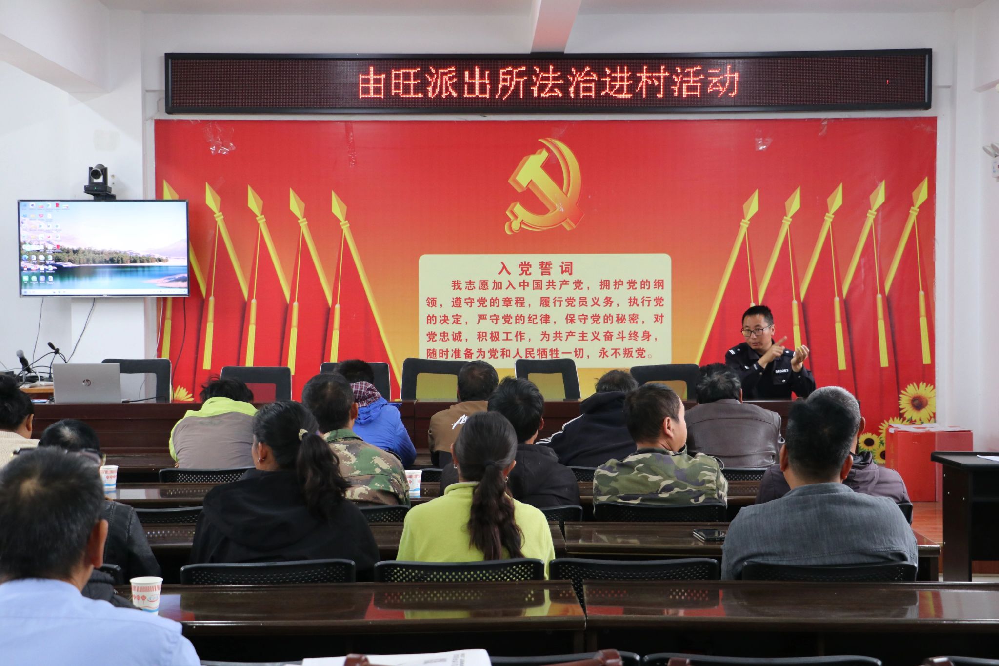 由旺派出所民警立足乡村实际,聚焦治安防范、反诈防骗、矛盾纠纷化解、交通安全四大重点开展精准宣讲。通过鲜活典型案例普及安全知识,重点提醒群众警惕各类网络诈骗陷阱,牢固树立“天下没有免费的午餐”的安全防范意识,切实守好自身财产安全。