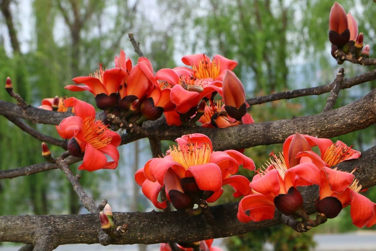 二月的天气日渐回暖,柔柳还未抽出新芽、舒展绿意,木棉却已抢先绽放,醉了整条河畔。花儿挨挨挤挤簇拥在枝头,热热闹闹诉说着春的讯息,一树连着一树,为清冷的初春河岸,绣上了一抹锦绣芳华。没有绿叶的陪衬,这抹红愈发干净纯粹,热烈得动人心魄。