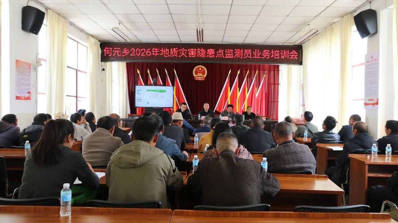 为全面夯实基层地质灾害防治工作基础,提升地质灾害监测预警与应急处置能力,切实守护人民群众生命财产安全,近日,何元乡组织召开2026年地质灾害隐患点监测员业务培训会。