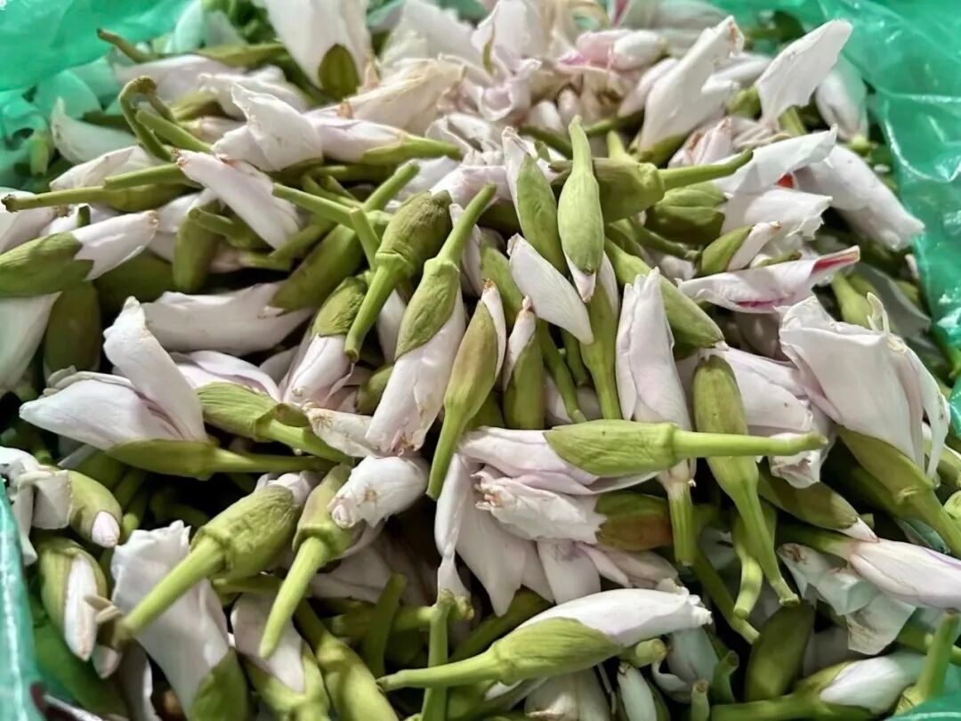 每到春日,施甸的菜市场里总能见到白花的身影,摊头的粉白花朵静静摆放,裹挟着山野独有的清润气息,这便是施甸春日最鲜明的标志——白花,又名白花羊蹄甲、玉荷花。每年二三月,山间白花树繁花满枝,当地人采摘嫩花苞与初绽的花瓣到市场售卖,藏着施甸人“食鲜当季,靠山吃山”的朴素智慧。施甸人天性不争不抢,始终顺着节气更迭,将大自然的山野馈赠端上餐桌,在年年花开花落间,把自己的根牢牢扎在故土。每次拎上一袋新鲜白花回家,就像是把整个春天请进了家门。