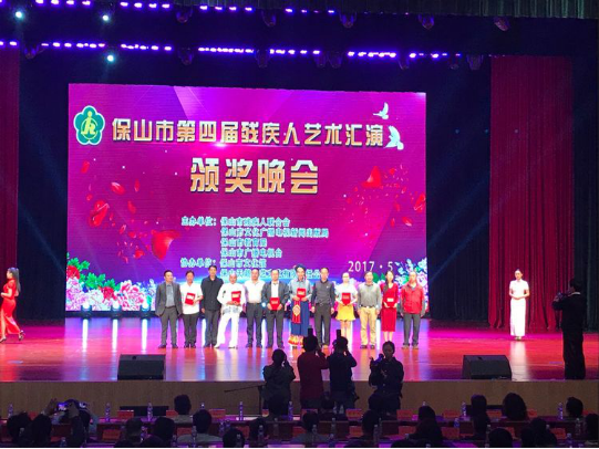 5月9日晚7:30,保山市第四届残疾人艺术汇演在永昌会堂开幕。施甸代表队四个节目均取得优异的成绩。其中《走夷方》获器乐类二等奖,《霸王别姬》获声乐类三等奖,《滑板车上的小女孩》获舞蹈类三等奖,《山丹丹开花红艳艳》获器乐类三等奖。
