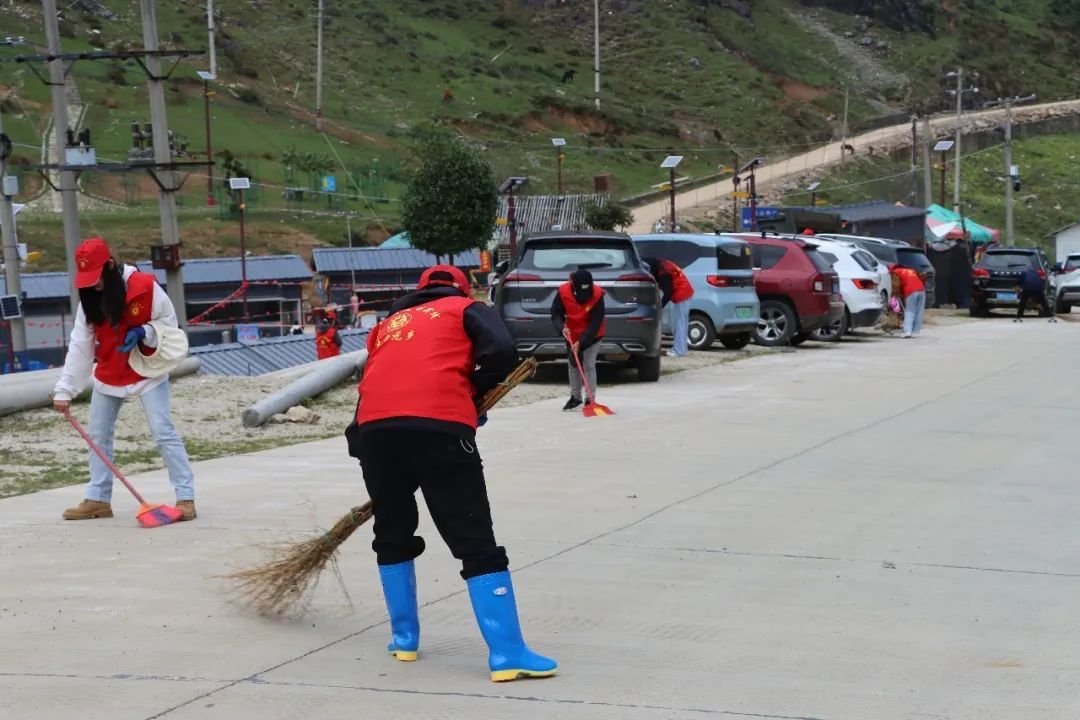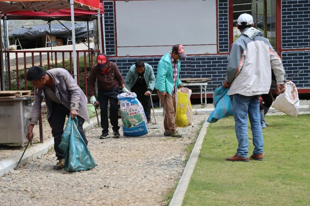 活动现场,群众和志愿者们干劲十足,分工明确,呈现出一派热火朝天的劳动景象。志愿者和群众有的手拿垃圾袋、钳子、扫帚等工具对草皮街路面和草坪的垃圾进行清理,有的拿着锄头在羊场至木老元公路沿线进行挖坑,播种桤木树种。